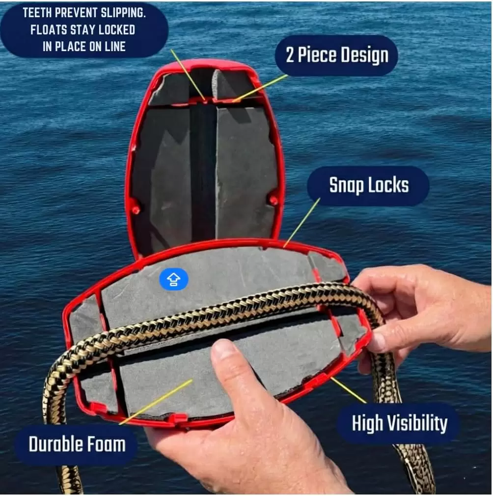 - TWO-PIECE BUOY: The Snap Lock Rope Float features a hassle-free two-piece design. Easily snap it around any rope up to 1” and secure it with locking clips and stainless steel screws for extra durability.