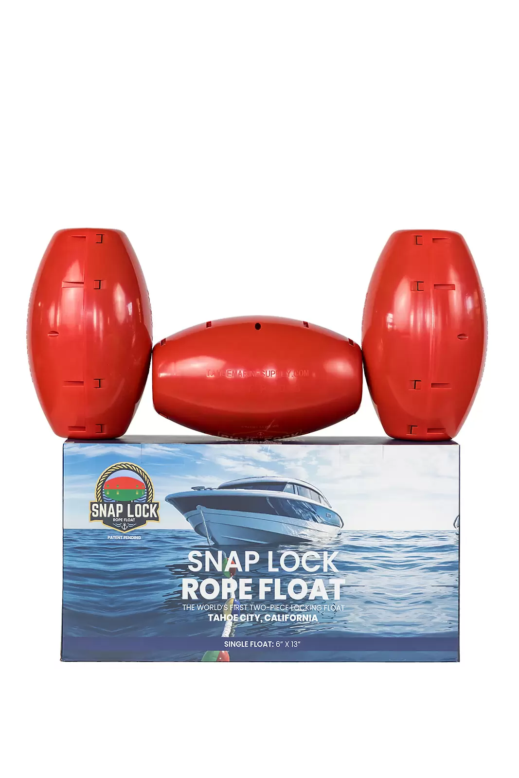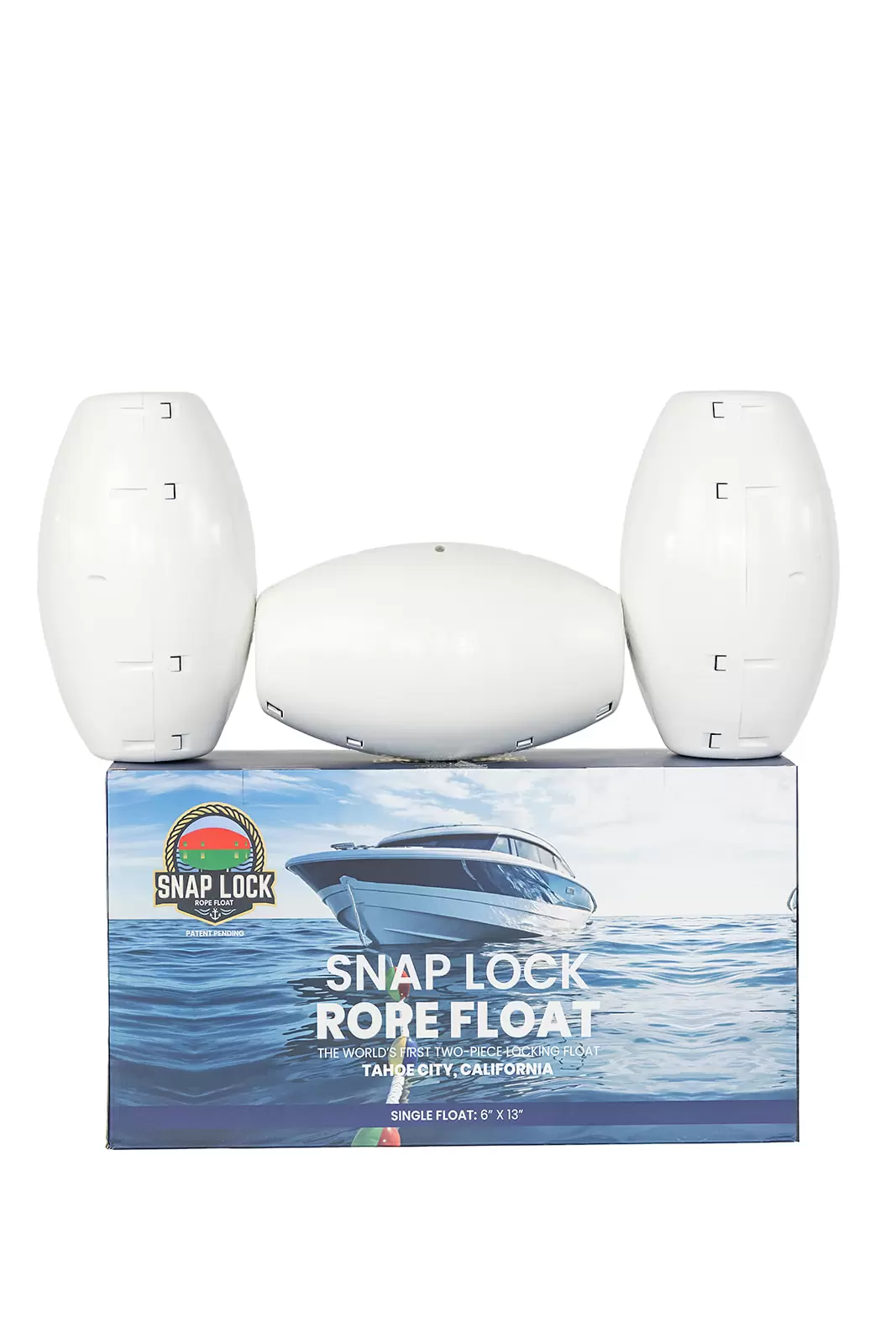 Born in the High Sierra and built to hold up anywhere on the planet, the Snap Lock Rope Float was designed, tested, and proven on Lake Tahoe by people who live, work, and play on the water. Backed by decades of on-the-water experience & splicing knowledge, the Snap Lock Rope Float was born out of necessity for a stronger, smarter solution that anyone can install without any splicing skills. We needed a better float solution for our hand spliced buoy lines, it didn’t exist, so we made our own. Its unique Snap Lock System uses precision-molded tabs, channels, grooves, and stainless-steel fasteners to create a secure connection to your line. The UV-resistant shell and environmentally friendly foam core are made to survive years of sun, storms, and heavy use—without fading, cracking. The EVA foam will not break apart and pollute the water. To minimize environmental impact, only a small amount of glue is used to connect the foam and shell. If the foam separates in transit, simply push it back into place; when assembled, the Snap Lock keeps it secure. Whether you’re securing to a mooring line, defining swim zones, setting channel markers, or any other floating line application, Snap Lock Rope Floats make any line float—with strength, style, and simplicity. In a world full of complication, simplicity wins — snap it on and your line floats.